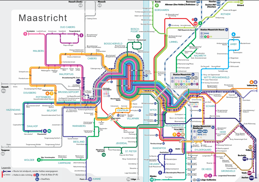 Even kort berichtje. Ik was afgelopen weekend in Maastricht. Daar rijdt Arriva de bussen, en heeft een behoorlijk goede stadsdienst op poten gezet. Voor de 24e stad van Nederland – al doet Maastricht aanzienlijk grootstedelijker aan dan dat – is dat prijzenswaardig. Bij een goed OV-netwerk hoort dan ook een netwerkkaart, alleen stelt die nogal teleur.